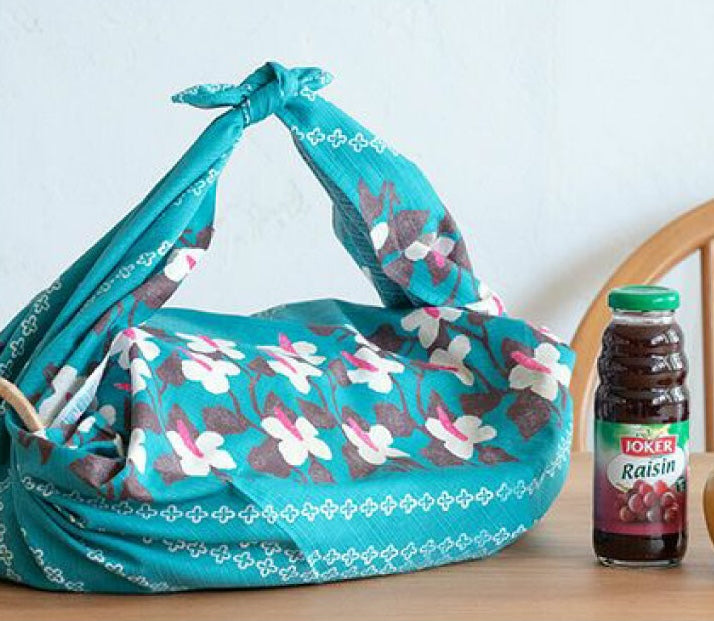 This furoshiki features Japanese artist/poet of the Taisho era Takehisa Yumeji's illustrations.