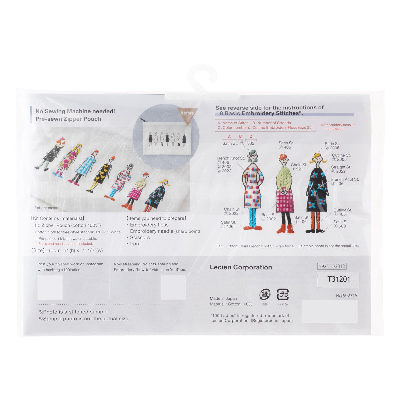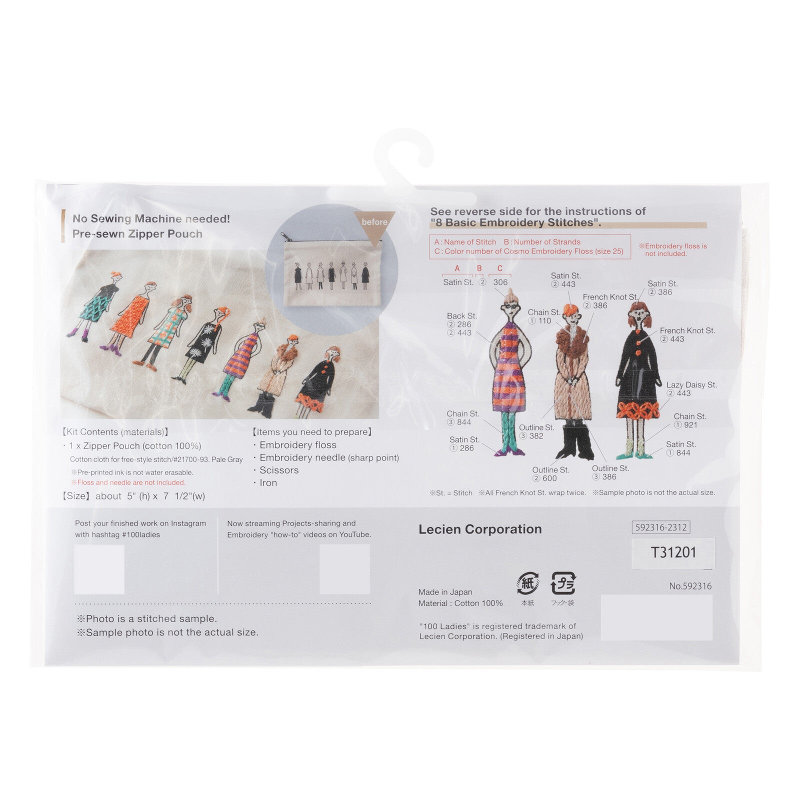 100ネエサン 刺しゅうキット ジッパー付きポーチ