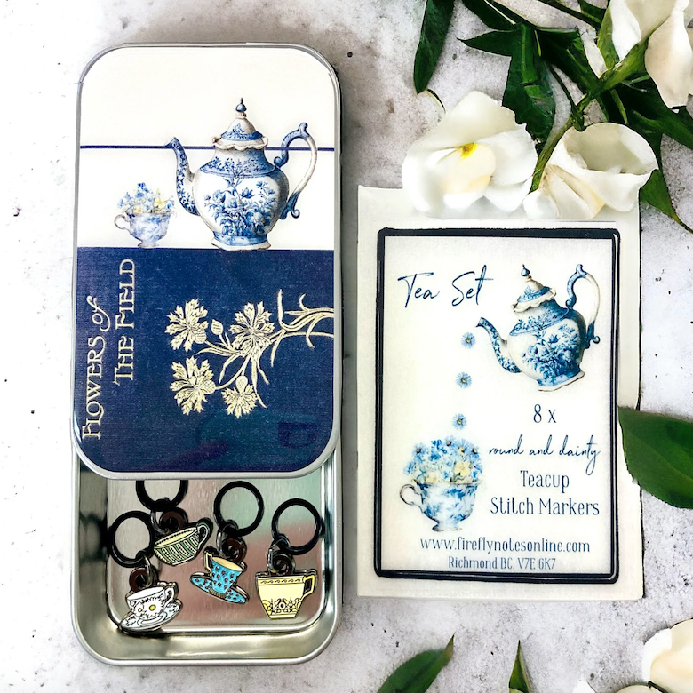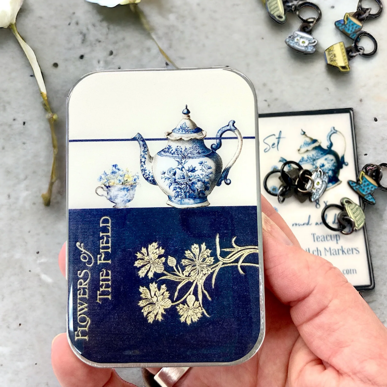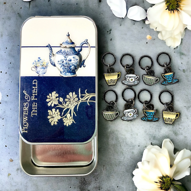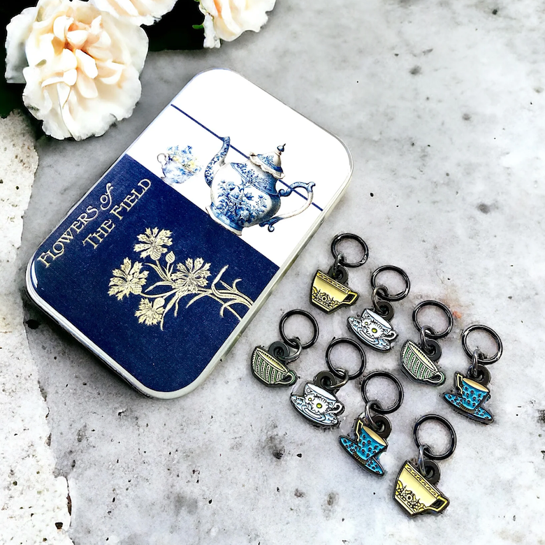 ティーカップ型ステッチマーカー8個、手作りレジン製スライダー缶入りのセット