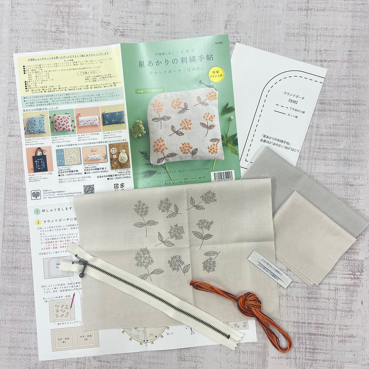 「今の暮らしに馴染む、日本の衣食住」を提案するブランド「星燈社」のやさしい図案を刺しゅうで表現したキットです。図案はあらかじめプリント済みなのですぐに刺しゅうに取り掛かれます。